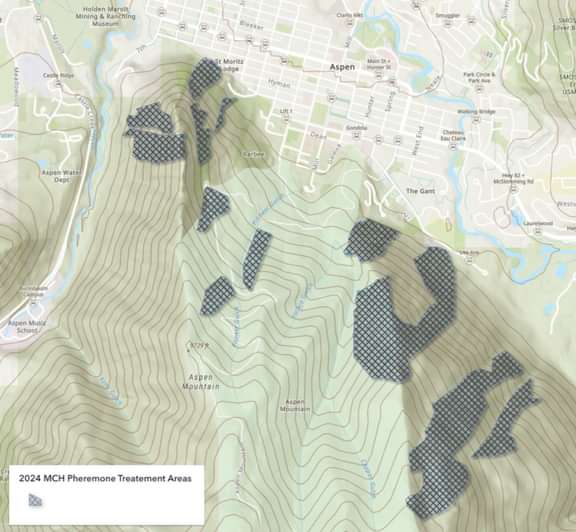 During the Summer of 2021 the City of Aspen, Pitkin County, Aspen Fire, Aspen Skiing Company, ACES, AVLT and USFS formed a group to address the spread of Douglas-fir bark beetles on the Shadow Mountain and Ute areas of Aspen Mountain. Each summer since 2022 the group has completed mitigation projects on over 150 acres of forest hanging pheromone packets and tracking beetle populations in the area. The group will continue pheromone treatments and tracking in the summer of 2025. The group will reconvene at the conclusion of 2025 to review new data (beetle population numbers, aerial survey data, and snowpack) and decide whether management in the following season is necessary.